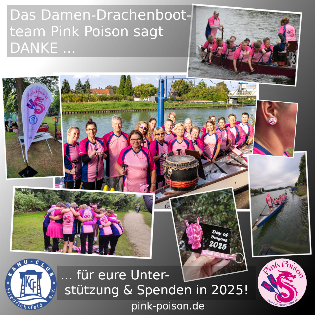 Das Damen-Drachenbootteam Pink Poison sagt DANKE